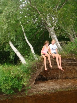 Since the storm last Friday night, we’ve had a lot of folks suggest we simply pull these uprooted birch trees at the lakefront back into place. I took photos of the girls in front of them to show perspective on the size of the “simple” task at hand. I keep thinking we can get some strong straps and use the muscle boat to pull them into place, but Mike seems skeptical about this method.