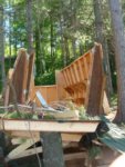The most disappointing loss is the two red pines flanking the fish-cleaning house. They lay like two wooden soldiers, parallel to the ground with their roots and turf exposed. And right on the shore, the small cluster of birch trees (the backdrop to many of my jewelry photos of Willow) are uprooted as well. I wonder if we can pull them back into place?