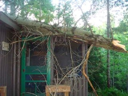 Given the seemingly unending reports of inclement weather this summer, if a hurricane-force wind momentarily bursts through our property, takes out a few trees, rips apart furniture, boats, docks and boathouses, well so be it. It could have been a lot worse. The lake could have drained . . . or the tree that fell upon one of our cabins could have hurt someone or caused structural damage. These things didn’t happen. What did happen around 11:30 p.m. on July 11 is known as a “microburst.” And what happened on Saturday, July 12 (in addition to our usual full resort turnover) was a day filled with chainsaws, bobcats and wonderful volunteers helping to clean up the mess.