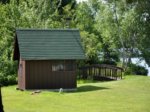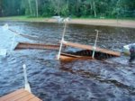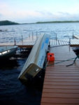Assessing the damage it’s clear this wasn’t a traveling wind. It hit one area and that’s where all the damage occurred. The area: our lakefront. We’ve managed to retrieve all the boats out of the forest, but the playground structure is still buried among the trees and I think we located the slide. Shattered dock pieces will need to be replaced and one section of our upturned main dock (the section with the bench near the American flag) was salvageable. Both the American flag and the Wisconsin flag are history. Our crew removed the trees that fell upon the boathouse, but we’ve been unable to get inside and see if the equipment survived. The inner tubes are most likely deflated but I don’t know about my fancy water-ski. Good thing I already broke it out once this summer.