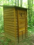 An outhouse, also known as a netty, privy, dunny, thunderbox, kybo, biffy, jakes or jacks, longdrop, Johnny-on-the-spot, one-holer, two-holer (for the more affluent and effluent), $hit house or earth-closet, usually refers to a type of toilet in a small structure separate from the main building, which does not have a flush or sewer attached.